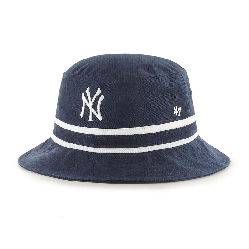 Rep your team pride in style with this New York Yankees Navy Striped ‘47 Bucket Hat. The '47 Bucket is the perfect addition to any out fit and is a relaxed and fitted design. Made from garment washed cotton twill.
