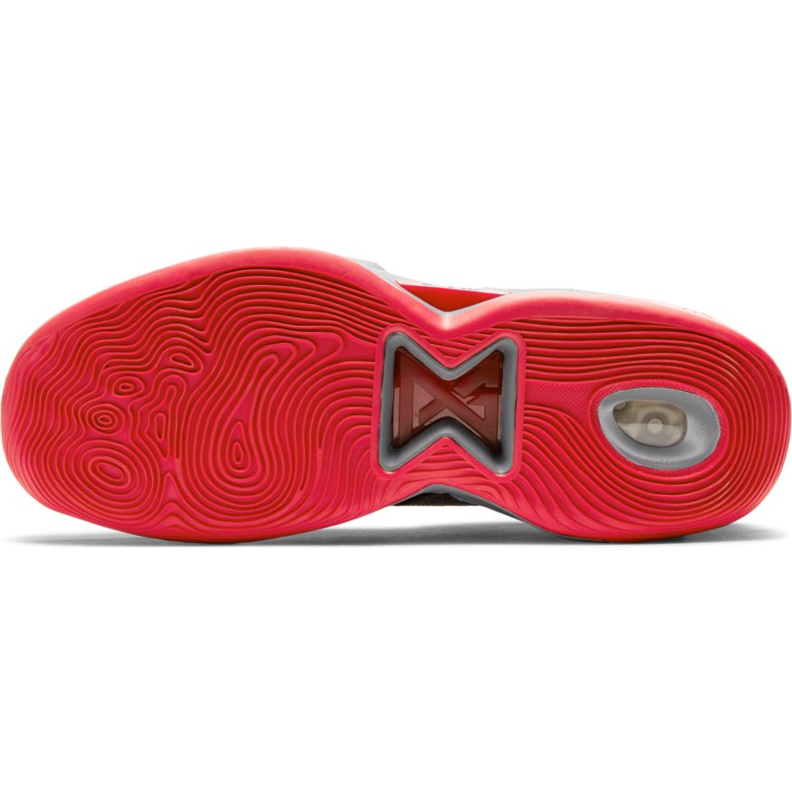 The outsole uses a multidirectional tread pattern to provide stop-and-go traction and control on the court.
